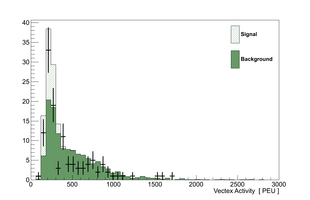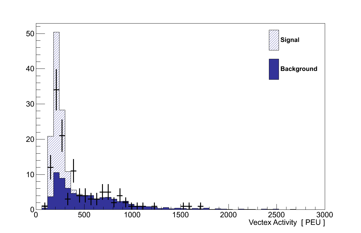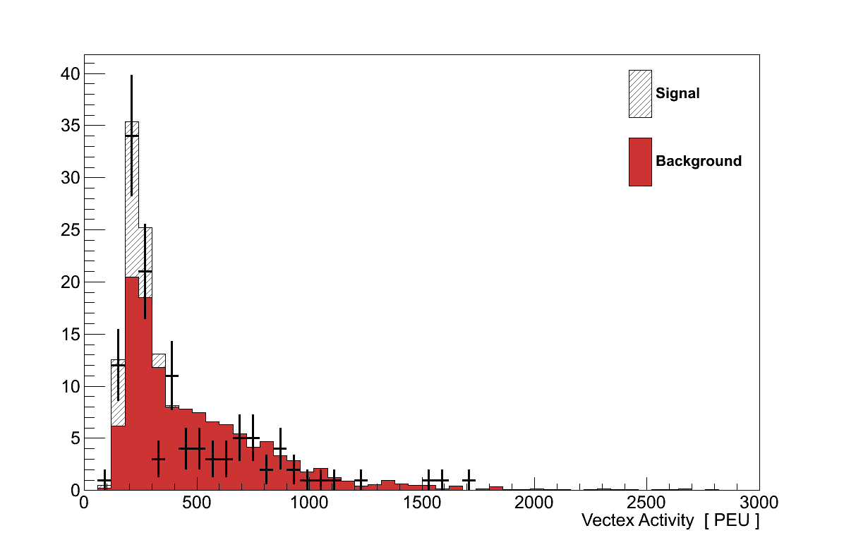 The 5×5 VA cut of 290 PEU corresponds to an average hit energy between these two extremes. However, since the VA is cut on directly, and the distribution of hit energies could include high fluctuations, the uncertainty assigned to the VA was set to 10 %.