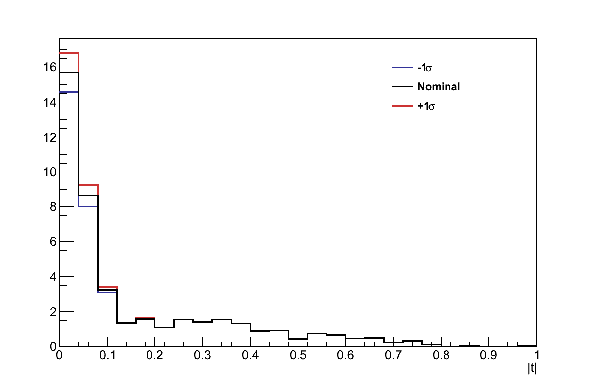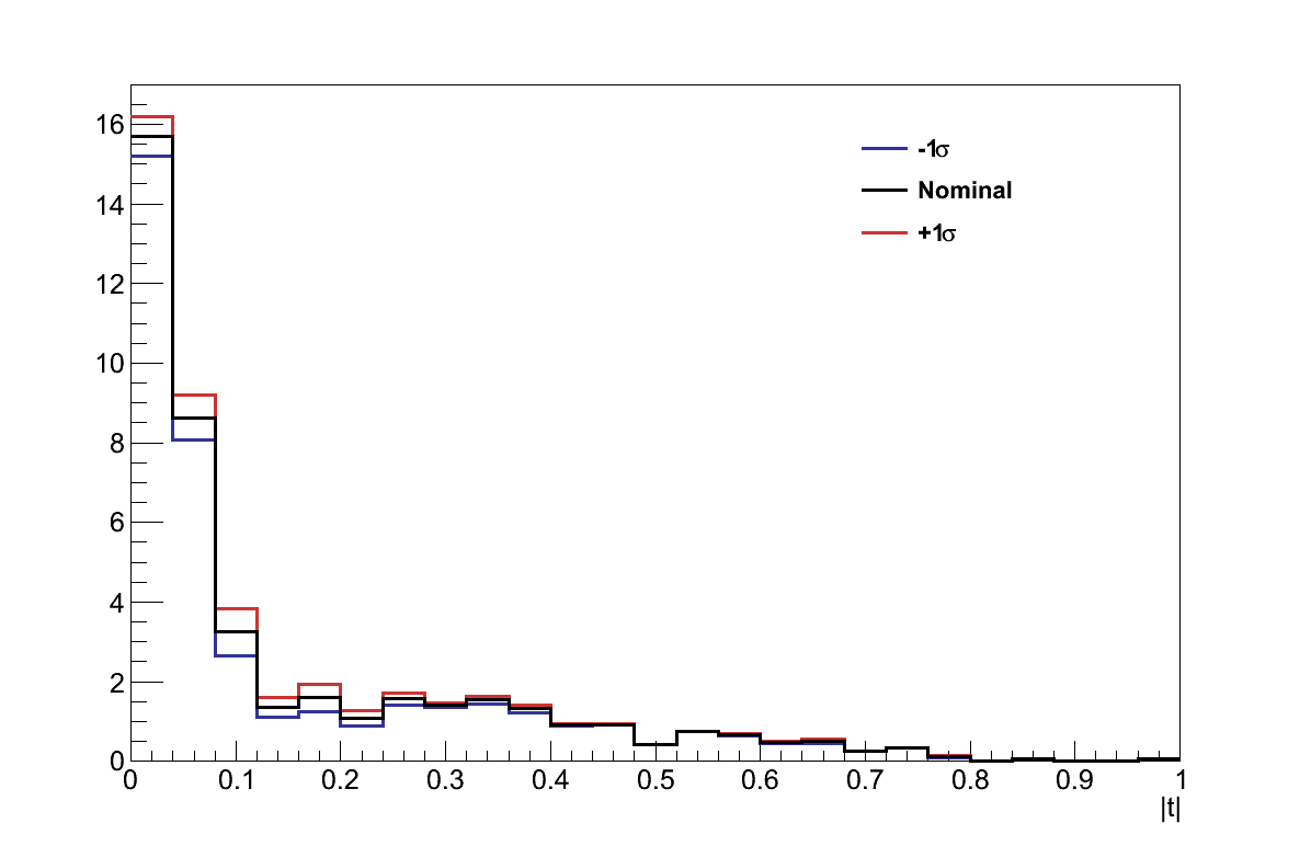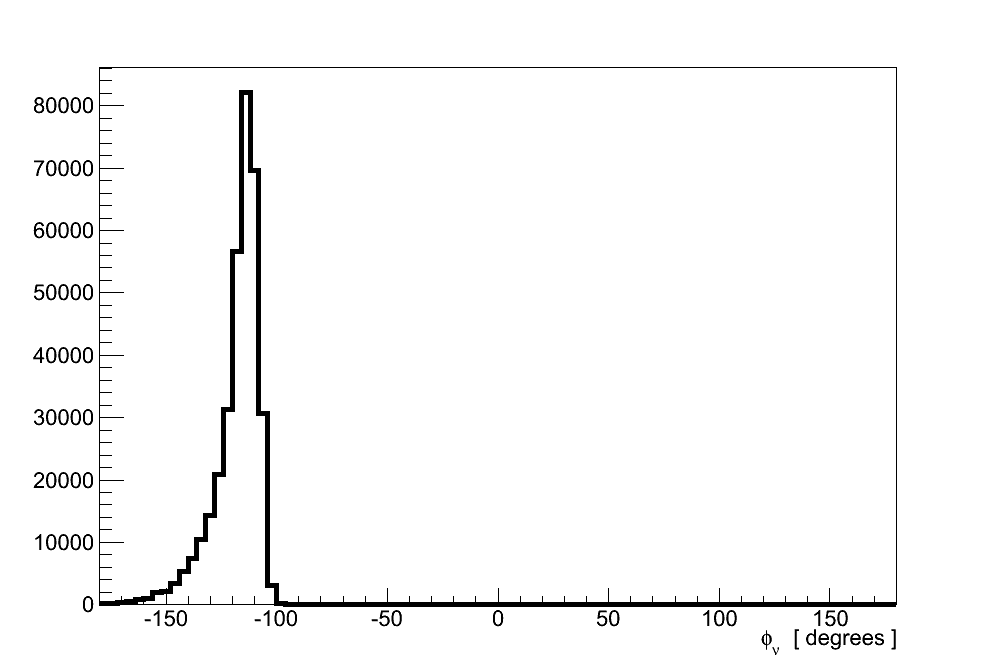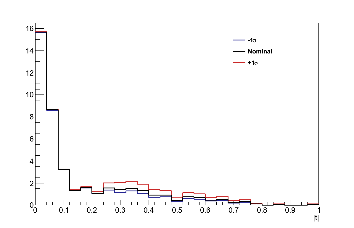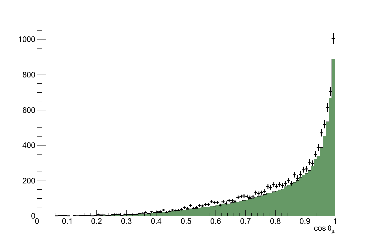 The |t| distribution of the Alvarez-Ruso model shown in Figure 6.32 (cf. Figure 6.27), again shows its slight preference for a more forward-going topology. However, because this difference moves events further from the cut value, it does not adversely affect the analysis.