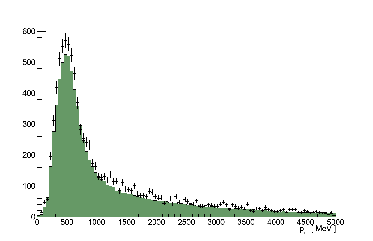 If no reconstructed tracks are found to meet these requirements the event is rejected. If one or more tracks is found the one with the highest momentum is chosen. This reconstructed track is referred to as the “muon candidate”.