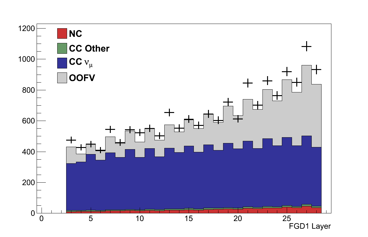 A study conducted for the νμ Inclusive analysis concluded that no additional reconstruction uncertainty for OOFV backgrounds in the FGD 1 scintillator or Tracker dead-material need be considered beyond those already dealt with. Interactions from outside the Tracker however, which likely entered FGD 1 at high-angle, were assigned a 45 % reconstruction uncertainty [14].