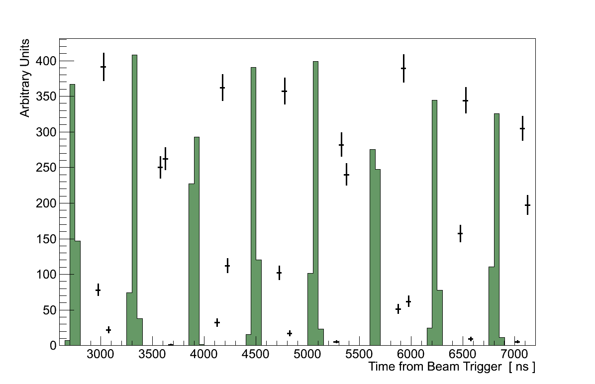 The ND280 detector is triggered once per beam spill so the tracks must be separated out into the bunches they belong to (Figure 6.2).