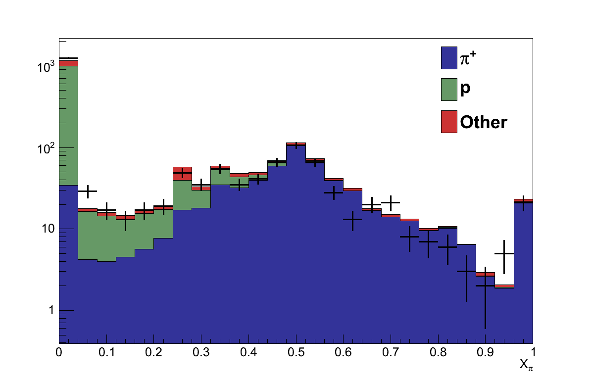 The νμ Inclusive analysis estimated that they would select 3 events from cosmic rays over T2K Runs 1-3 (0.02 % of their events). Since it is highly unlikely that these events could also produce a track meeting the requirements of the pion candidate, and pass the subsequent analysis cuts, no systematic was assigned due to cosmic ray backgrounds.