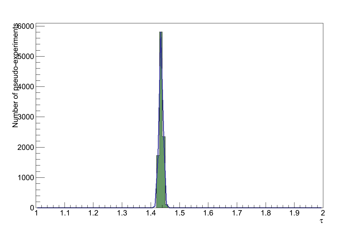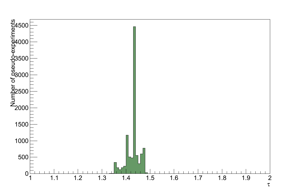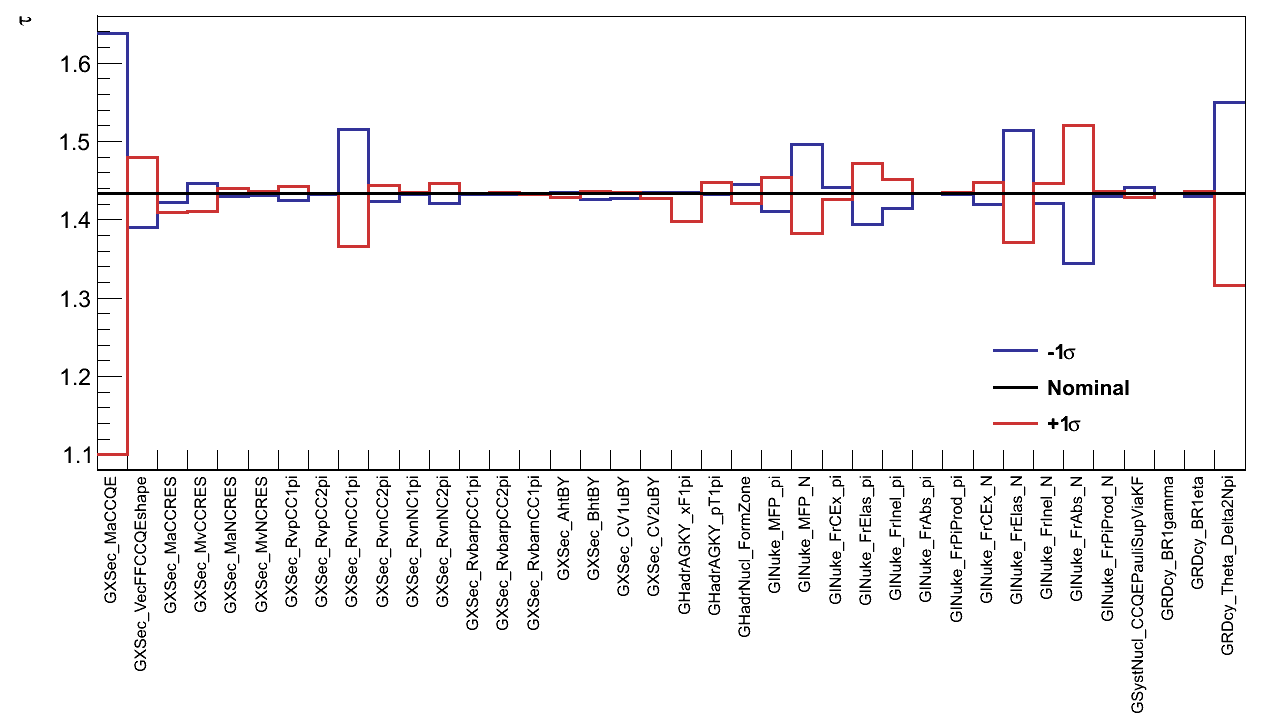 To assess the effect of OOFV interactions on the value of τ, the analysis was re-run twice for each of the three categories described above, weighting the corresponding interactions up and down according to the uncertainty assigned to them. For each category, the largest of the two resulting shifts in the value of τ is taken to be the uncertainty resulting from that category. Finally, the total OOFV uncertainty is taken from the sum-in-quadrature of the three categories' uncertainties, giving a value of: στOOFV = 0.0079.
