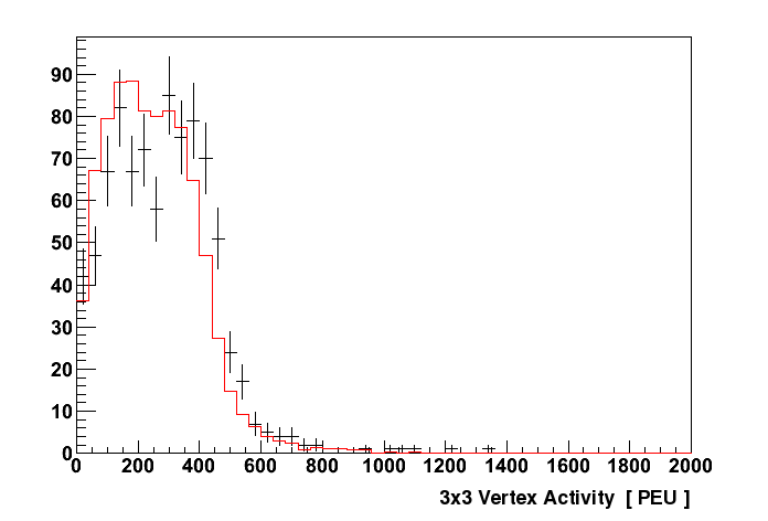 The final systematic to be considered is that for the vertex activity (VA), which is directly cut on in the analysis (Section 6.7). Differences in the amount of energy deposited by particles, or in the response of the detector to a given energy deposition could result in differences in the VA measured.