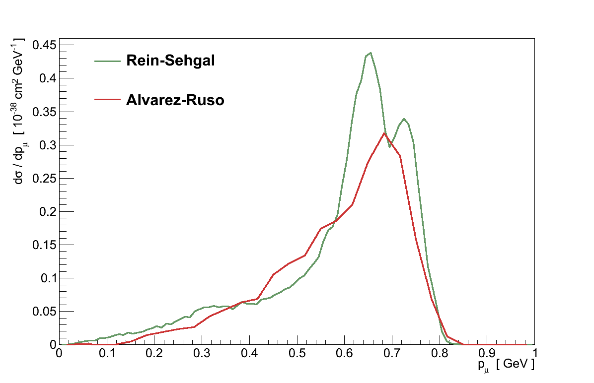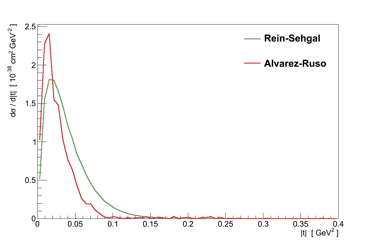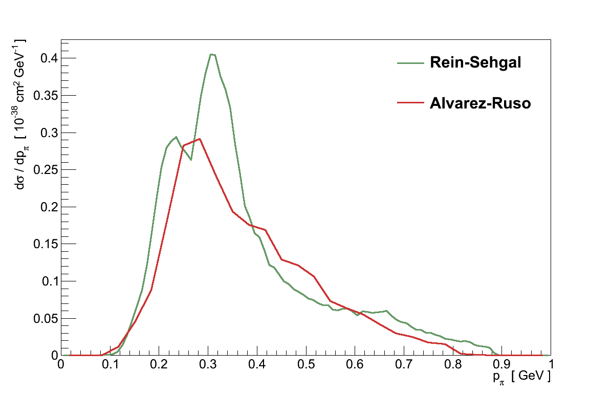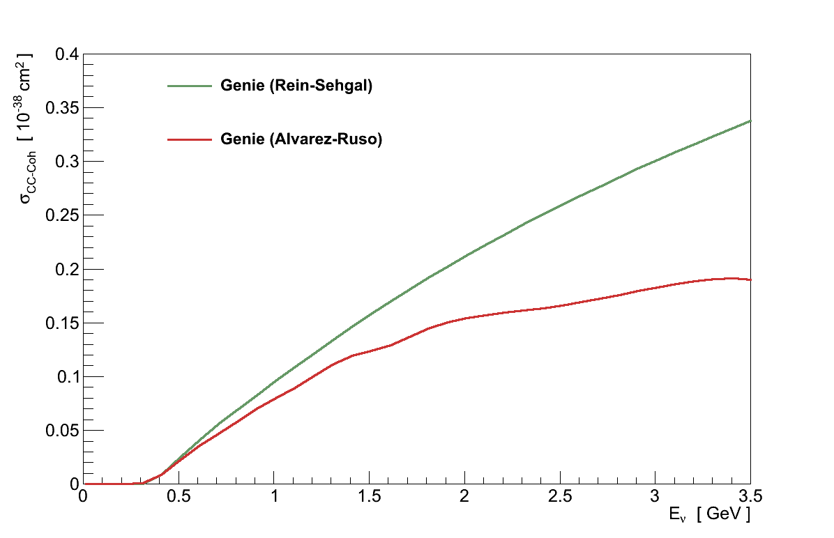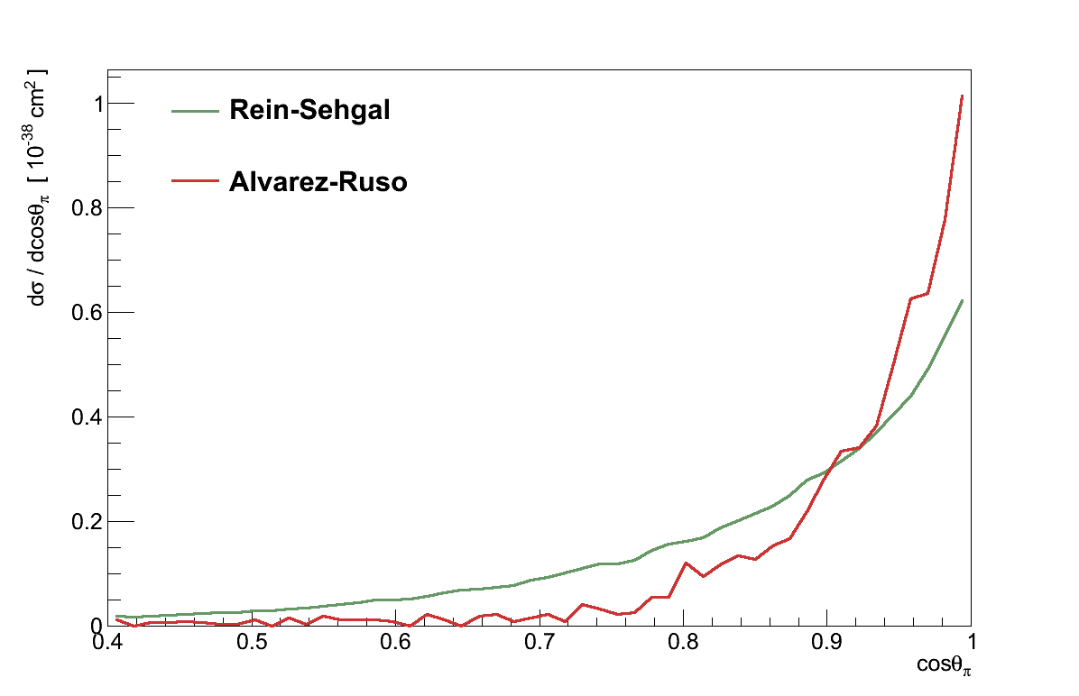 One such alternative is the Alvarez-Ruso model [21] [22] [23]. Unlike the Rein-Sehgal model, which is an example of a “PCAC model”, the Alvarez-Ruso model is an example of a “microscopic model”. Whereas PCAC models describe coherent pion production off of a nucleus in terms of a single interaction channel with that nucleus, a microscopic model describes the process in terms of a coherent sum of neutrino-nucleon interactions where the final-state nucleon is constrained to remain in the same quantum state.