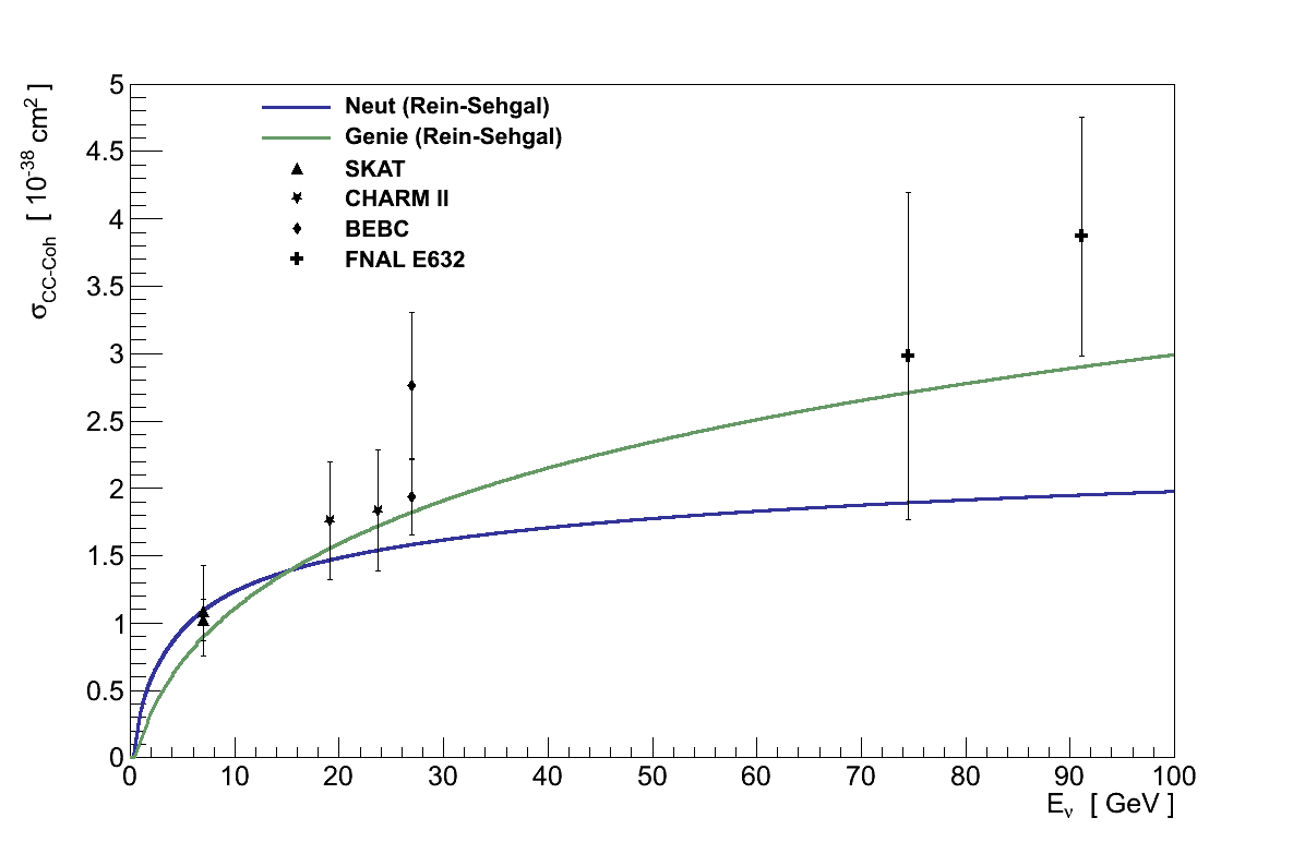 The corresponding cross-section for CC coherent pion production differs by a factor of 2, resulting from the change of pion-decay constant. More recently, in response to the limit set by K2K, Rein and Sehgal published an update to this model [16] to account for the lepton mass in CC interactions. It is implemented as a multiplicative correction, C, to the cross-section in Equation 4.18: