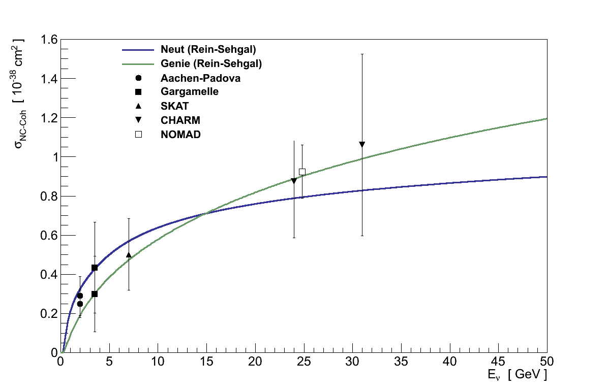 In response to Aachen-Padova's discovery, Dieter Rein and Lalit Sehgal developed a theoretical model for coherent pion production [3], building on Lackner's paper and their own recent work on resonance pion production. Their predictions agreed with the cross-section extracted by Aachen-Padova, as well as one from a retrospective re-analysis of data from the Gargamelle experiment [4].