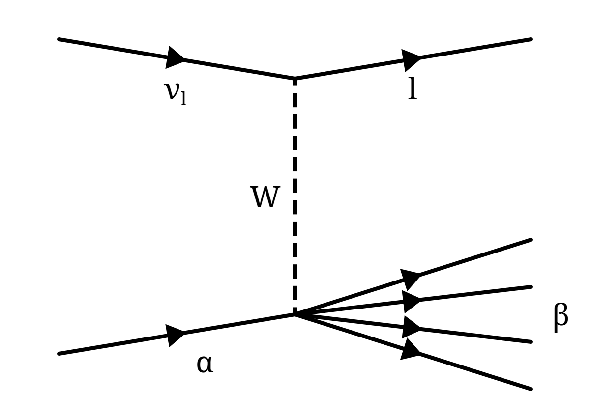 with uν and ul Dirac spinors for the initial neutrino and final-state lepton respectively.