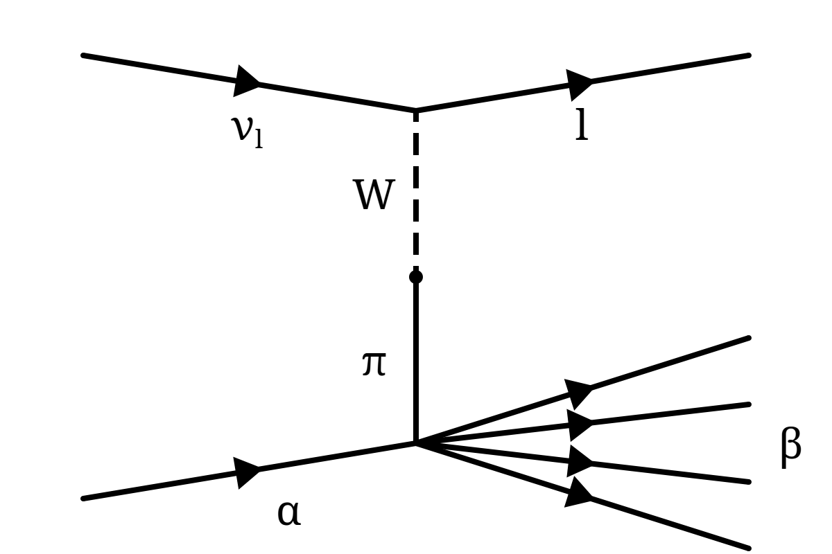 The three-momenta pν, pl and pπ are those of the incoming neutrino, and outgoing lepton and pion respectively. Beginning with only the s-channel Δ production mode, the matrix element: