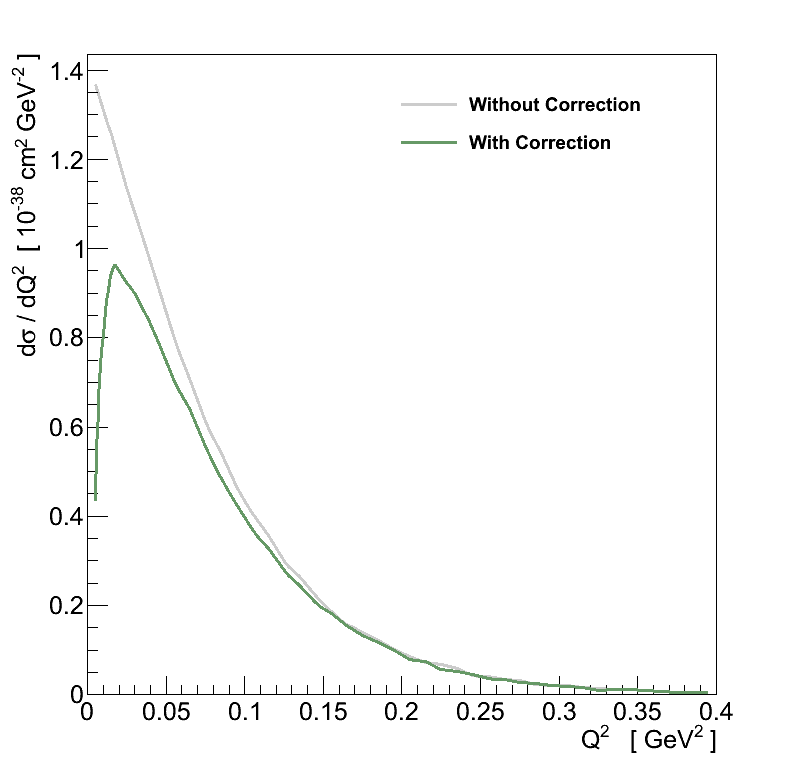 This results in a reduction of the CC coherent cross-section at low energies and, as can be seen in Figure 4.7, there is a dramatic suppression in the Q2 distribution at low values. This is significant since both SciBooNE and K2K used the Q2 distribution in their search for CC coherent rather than the more characteristic |t|, the shape of which is less affected.